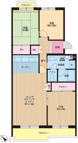 LDK 12.5帖 / 洋室 6.0帖 / 洋室 6.0帖 / 洋室 4.5帖 / |