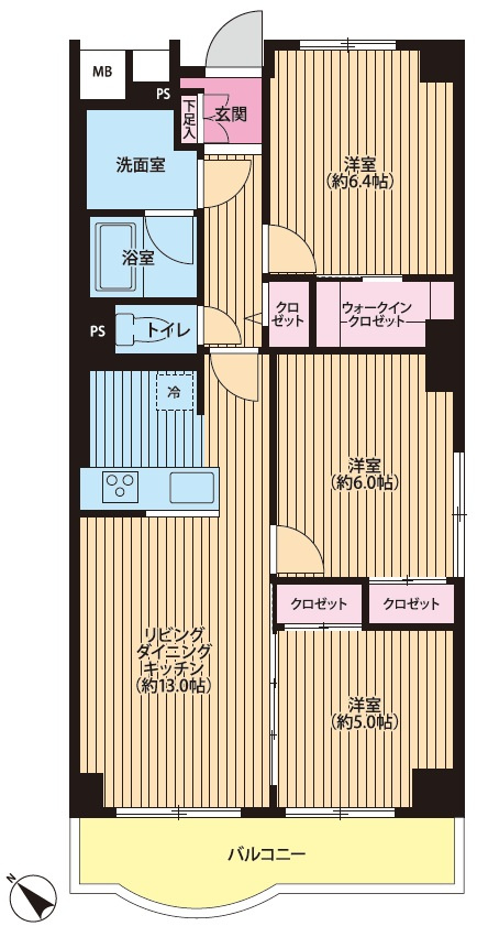 | 専有面積 | 69.75㎡ | バルコニー面積 | 7.06㎡ |