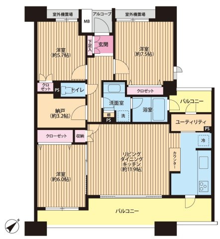 | 専有面積 | 87.12㎡ | バルコニー面積 | 20.59㎡ |