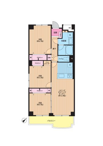 | 専有面積 | 69.75㎡ | バルコニー面積 | 7.06㎡ |